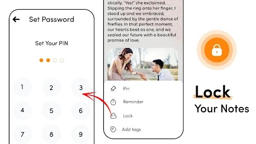- 🔒 Secure Notes: Lock sensitive notes with a PIN, pattern, or fingerprint for an added layer of privacy, keeping confidential information safe from prying eyes.