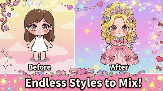 - Personalización Profunda 👗: Ofrece una gran variedad de opciones para vestir, maquillar y peinar a tus personajes, desde ropa casual hasta atuendos temáticos de fantasía.