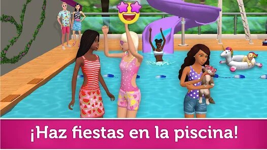 - Vive en la Mansión Rosa 🏠: Explora una Dreamhouse gigantesca y totalmente interactiva de tres pisos, con jardín, piscina, sala de cine y más, cada habitación llena de objetos con los que jugar.