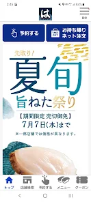 『はま寿司』アプリは飲食業界、特に寿司関連のアプリで、外食をよりスムーズに便利にすることを目的としています。アプリを開いた瞬間、落ち着いたブルーを基調としたホーム画面が目に飛び込んできて、ユーザーに親近感を覚えさせます。オンボーディングプロセスもシンプルで、いくつかのステップを踏むだけで、あっという間に登録が完了します。まずはログイン画面から「あたたかいお寿司の香りが漂ってくるような」というコピーが表示されて、あなたの食べたいものを予約しに行く準備が整います。また、最初に目にするのは、本日のおすすめメニューやキャンペーン情報が並ぶダッシュボードです。この情報が、背景のコントラストとのバランスがうまく取れていてとても見やすく、直感的に使えるようになっています。