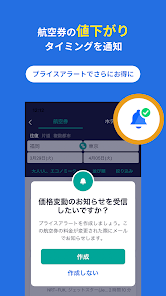 📆 便利なプライスアラート: 希望の航空券が値下がりした際に通知を受け取れる