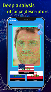 🌍 多国籍対応: 「MyFace: 顔別国籍」は、世界中のさまざまな国籍に対応しており、広範囲な顔の特徴に基づいて判定します。そのため、ユーザーがどの国に似ているのかを確認するだけでなく、異なる国籍に対する理解を深めることもできます。