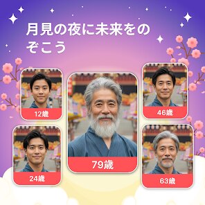 - 🔮 AI老化シミュレーション - 高度な顔認識アルゴリズムにより、10年後、20年後と年代を指定して未来の姿を予測
