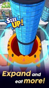 - Absorção e Crescimento Dinâmico 🕳️: O núcleo do jogo é um ciclo de feedback imediato e viciante. Cada objeto consumido aumenta visual e numericamente o tamanho do seu buraco, desbloqueando novas categorias de itens para devorar. Ver um edifício de vários andares sendo tragado pela primeira vez é uma experiência surpreendentemente satisfatória.