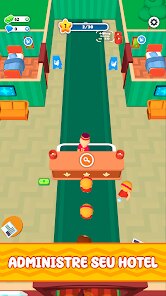 Minha experiência com o jogo foi imediatamente positiva. A curva de aprendizado é suave e intuitiva; em poucos minutos você já está reformando quartos, contratando funcionários e atendendo hóspedes. Os controles são totalmente baseados em toques e muito responsivos, sem travamentos ou lentidão, o que é essencial para um jogo deste tipo. O que mais me prendeu foi o ciclo de feedback imediato: você gasta para melhorar um serviço, os hóspedes ficam mais felizes, pagam mais e geram mais receita para a próxima melhoria. É um loop gratificante. Um momento marcante foi quando finalmente desbloqueei o restaurante e vi o fluxo de clientes aumentar consideravelmente, adicionando uma nova camada de gerenciamento. A progressão é bem dosada, com novos recursos e áreas do hotel sendo liberados em um ritmo que mantém a novidade sempre presente, evitando a sensação de repetição ou estagnação.